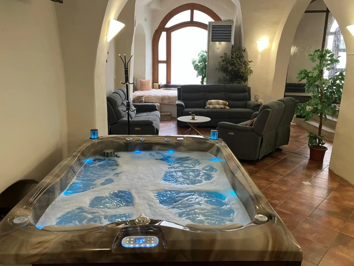 Dopřejte si relaxaci v luxusní vířivce s horkou, perličkovou koupelí a masážními tryskami.